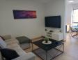 1 sofa bed in the living room, 140cm wide. The modern kitchen is very well equipped for cooking, with multiple small appliances, a large refrigerator with freezer.