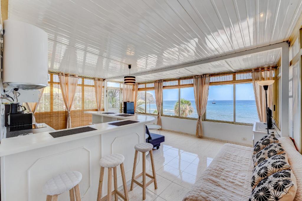 Front Ocean AirCon Los Cristianos Unique apartment in Los Cristianos offers direct beachfront access with a private beach area. Guests enjoy stunning sea views and a sun terrace, perfect for relaxation.Comfortable Living Spaces: The spacious apartment features one bedroom, a living room, and a fully equipped kitchen. Amenities include a washing machine, balcony, terrace, and free WiFi, ensuring a comfortable stay.