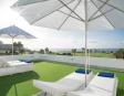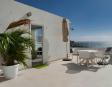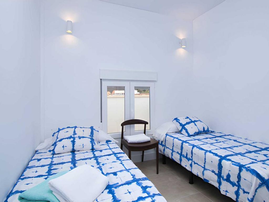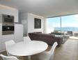 The master bedroom features a luxurious double bed and patio doors that open up to the terrace, allowing you to wake up to the sight of the stunning surroundings. The second bedroom, though compact, offers functional accommodations with twin beds. Both bedrooms share a well-appointed bathroom, ensuring convenience and privacy for all guests.