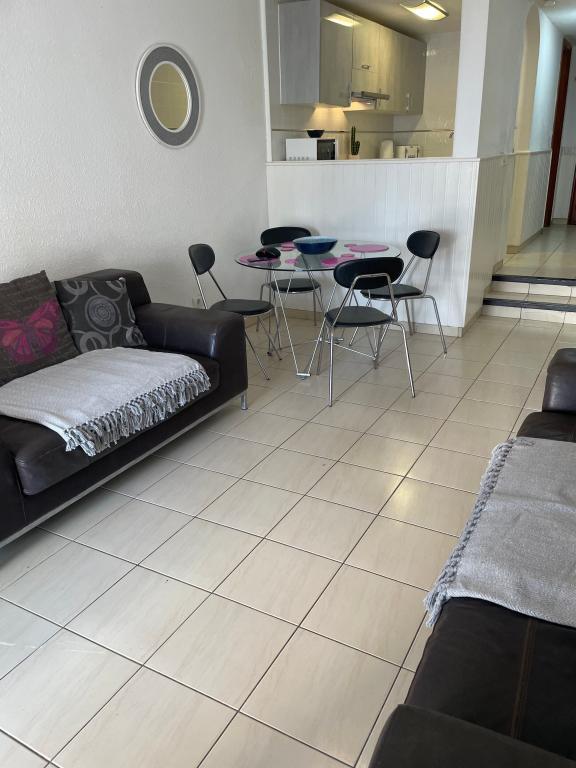 Parque Santiago is a highly sought after complex, in a prime position. A 2 minute stroll will take you to the beaches and an extensive variety of shops, bars and restaurants to suit all tastes. This is a spacious 2 bedroom apartment which consists of downstairs Shower room /W.C, fully equipped kitchen, dining area and through lounge (complete with 2 leather settees, LCD TV and DVD (TV has a new T.V digibox, so has an abundance of English and international satellite channels.)