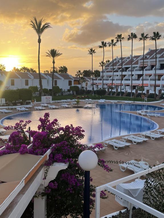 Parque Santiago II is a very popular complex and is centrally located for all local amenities....including, Restaurants, shops, bars and several beaches. Outside: Large heated swimming pool with children's section and large sunbathing areas. Large balcony upstairs, with patio furniture, mountain and sea views. Downstairs terrace, garden with patio furniture. Towels and linen are provided for the duration of your stay.