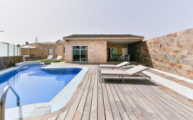 This charming 3-bedroom, 2-bathroom villa in Maspalomas, Gran Canaria, accommodates up to 9 guests and offers a private pool with fountain, jacuzzi, and outdoor dining areas. Ideal for families and groups, the property combines comfort, relaxation, and proximity to the vibrant Playa del Inglés for beachside fun and entertainment.Part of our exclusive collection of luxury holiday homes available for booking in Spain, the villa also provides concierge services, airport transfers, private tours, welcome packs, and more to ensure a seamless holiday experience.