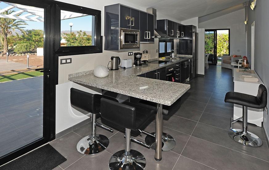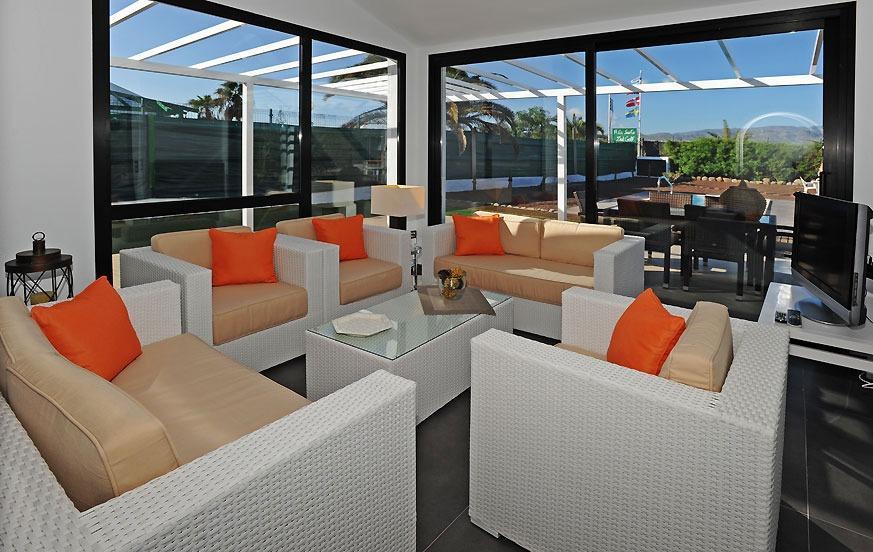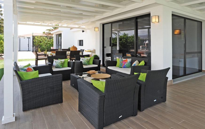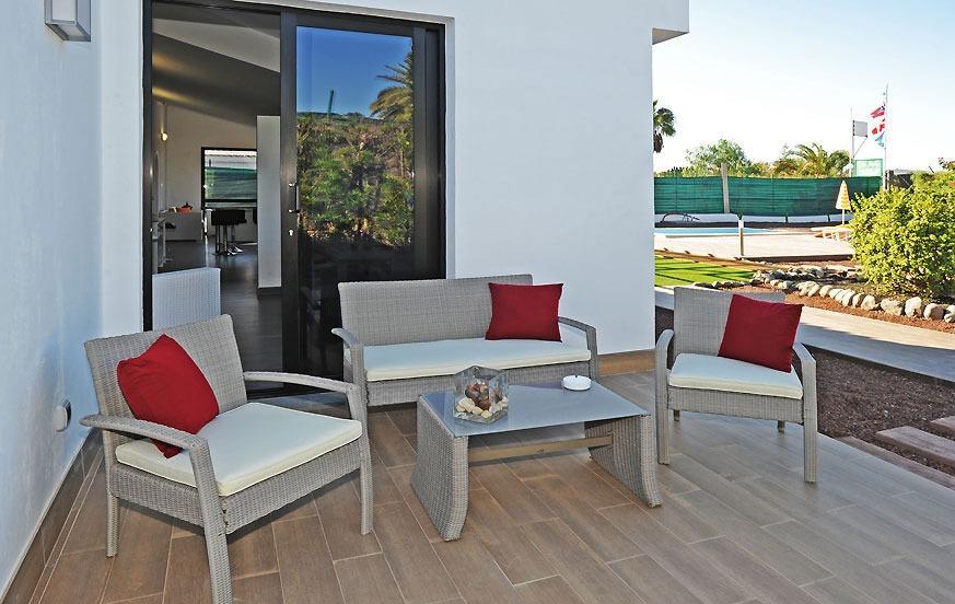 Step outdoors to relax in the private heated pool (2.5 m x 5 m x 1.70 m), surrounded by sun loungers and umbrellas for maximum enjoyment under the warm Gran Canaria sun. The villa's garden and porch offer a tranquil setting, while the barbecue area provides a perfect spot for alfresco dining and evening gatherings.