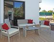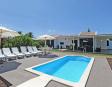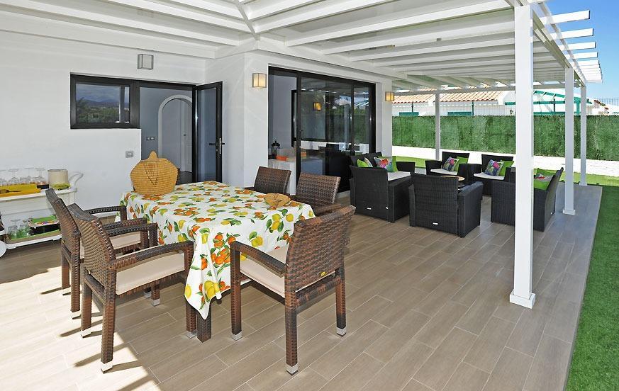 This inviting villa accommodates up to six guests with three well-appointed bedrooms: one spacious room with a double bed and two bedrooms with twin beds. Two modern bathrooms with showers provide convenience and privacy. The open-plan living and dining area creates a bright, welcoming space for socializing, while the fully equipped kitchen comes with modern appliances including a fridge-freezer, ceramic hobs, oven, microwave, coffee maker, and dishwasher, ensuring effortless meal preparation during your stay.