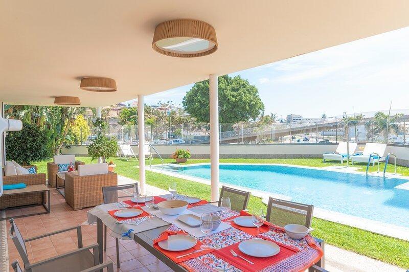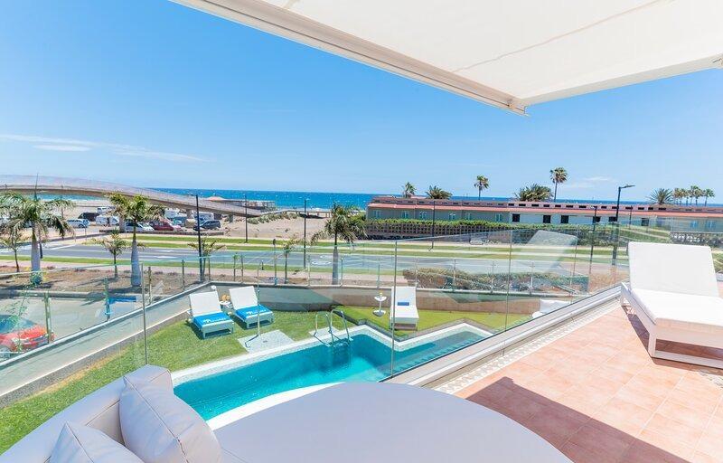 With easy pedestrian access from the villa, there's no need to hire a car if you plan to stroll to the beach, enjoy local cafés, or explore nearby San Agustín and Playa del Inglés. The promenade connects the beaches and offers a scenic track for jogging with views stretching to Faro Maspalomas.