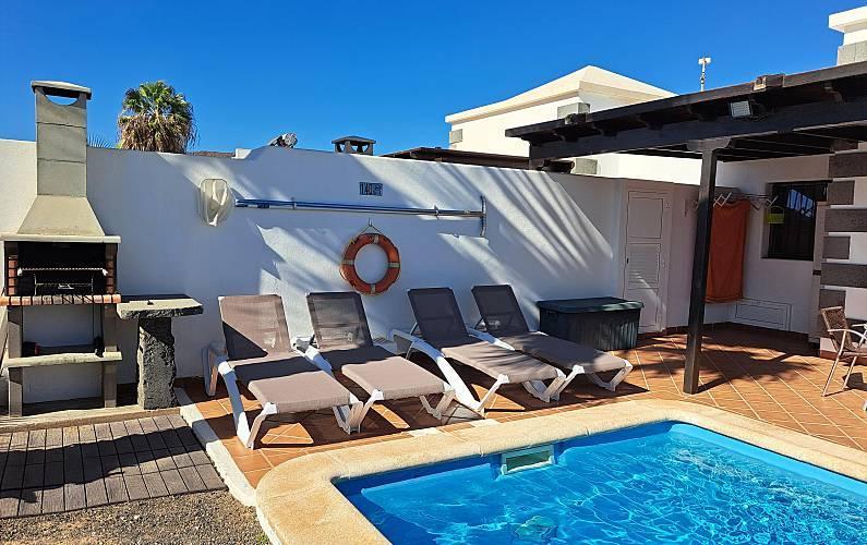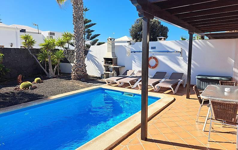 This Villa has a electrically heated pool in neat back garden which is now fully private (walls have been raised)There is off road parking on the gated drive, beside the traditional Canarian garden.