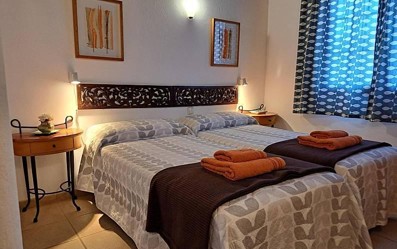 The villa is semi-detached and has a lounge with patio doors to the pool-side, a modern bathroom and large master bedroom with twin beds pushed together and a further twin bedded room.