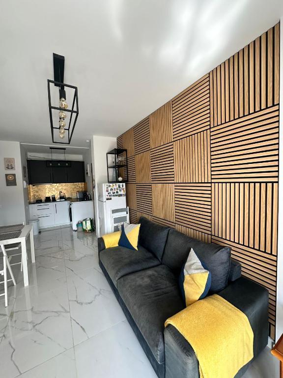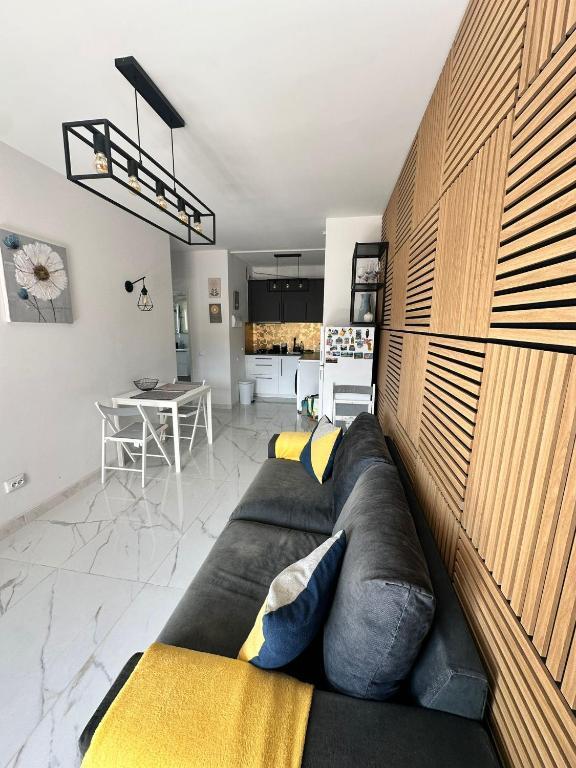 Comfortable Accommodations: The apartment features one bedroom, a living room, and a fully equipped kitchenette. Amenities include a balcony, washing machine, and free WiFi.