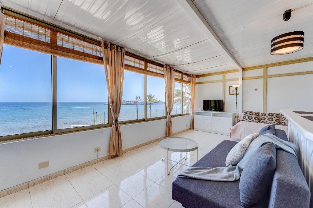 Front Ocean AirCon Los Cristianos Unique apartment in Los Cristianos offers direct beachfront access with a private beach area. Guests enjoy stunning sea views and a sun terrace, perfect for relaxation.Comfortable Living Spaces: The spacious apartment features one bedroom, a living room, and a fully equipped kitchen. Amenities include a washing machine, balcony, terrace, and free WiFi, ensuring a comfortable stay.